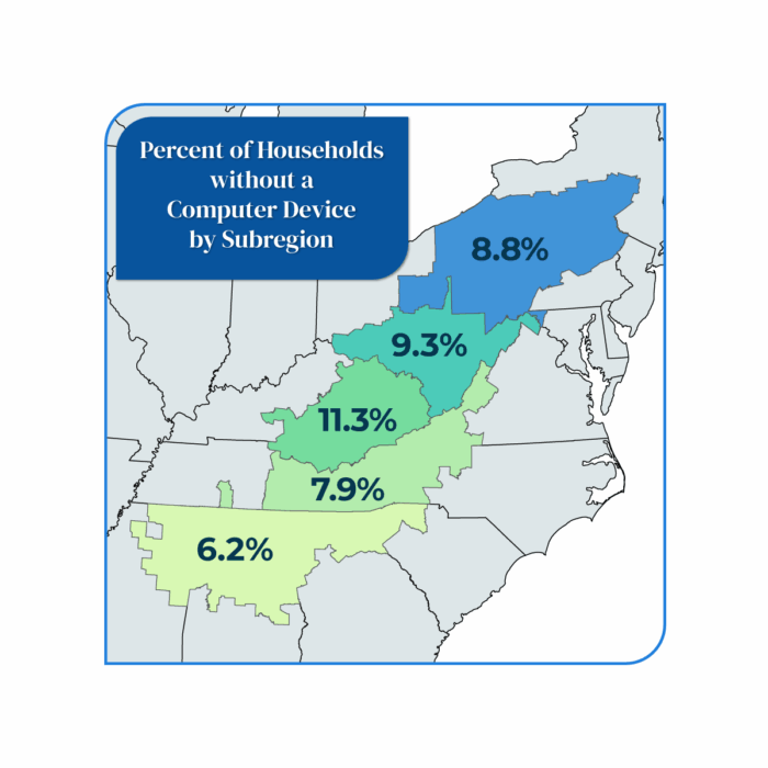 In the wake of COVID-19, the share of Appalachian households with at least one computer device increased by 7.9 percentage points – nearly two points more than the U.S. rate – between 2014-2018 and 2019-2023.