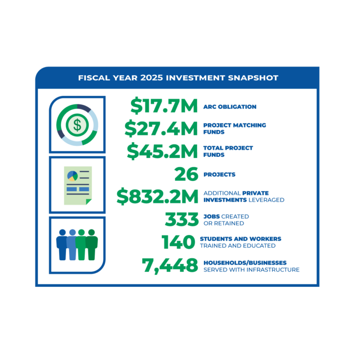 In partnership with the Georgia Department of Community Affairs, ARC is supporting 26 projects in Georgia totaling $17.7 million in fiscal year (FY) 2025. These investments have been matched by $27.4 million and are attracting an additional $832.2 million in leveraged private investments in Georgia. They are also creating or retaining 333 jobs, serving 7,448 households/businesses with infrastructure, and benefiting the 3.5 million residents in Georgia’s 37 Appalachian counties.