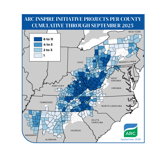 In September 2025, ARC awarded $11 million to 32 projects across the region. These INSPIRE awardees will support the SUD recovery-to-employment continuum in nine Appalachian states by training and certifying recovery specialists, establishing cross-sector partnerships, expanding peer support networks, launching recovery-to-work programs with a full spectrum of coordinated support services and more.