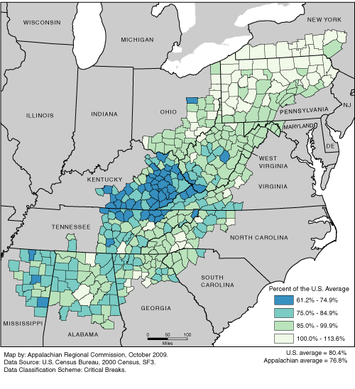 Relative High School Completion Rates in Appalachia, 2000