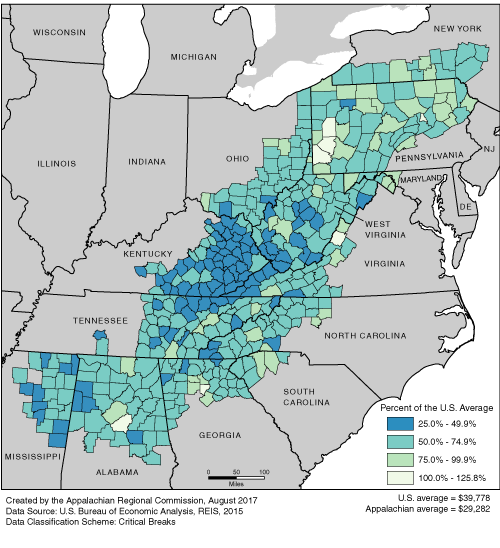 Relative Per Capita Market Income Rates in Appalachia, 2015