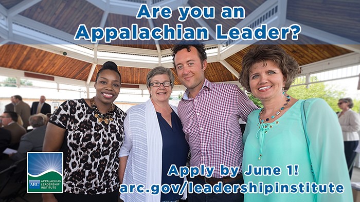 Applications are currently being accepted at www.arc.gov/leadershipinstitute through June 1, 2019. The 2019–2020 Appalachian Leadership Institute will run from October 2019–July 2020.