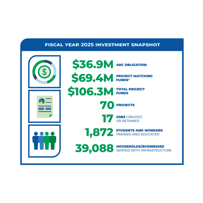 In partnership with the Ohio Governor’s Office of Appalachia, ARC is supporting 70 projects in Ohio totaling $36.9 million in fiscal year (FY) 2025. These investments have been matched by $69.4 million in Ohio. They are also training and educating 1,872 students and workers, serving 39,088 households/businesses with infrastructure, and benefitting the 2 million residents in Ohio’s 32 Appalachian counties.