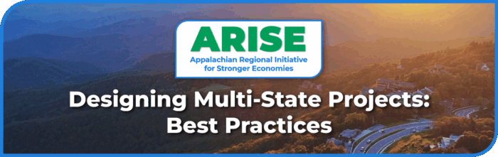 Join us for the Designing Multi-State Projects: Best Practices webinar to learn more about best practices when designing projects for ARC’s Appalachian Regional Initiative for Stronger Economies (ARISE). Attendees will have the opportunity to gain the knowledge needed for a successful ARISE application. You’ll learn best practices for developing multi-state projects for ARC, receive valuable tips for crafting a strong ARISE pre-application and get your questions answered during the Q&A session.