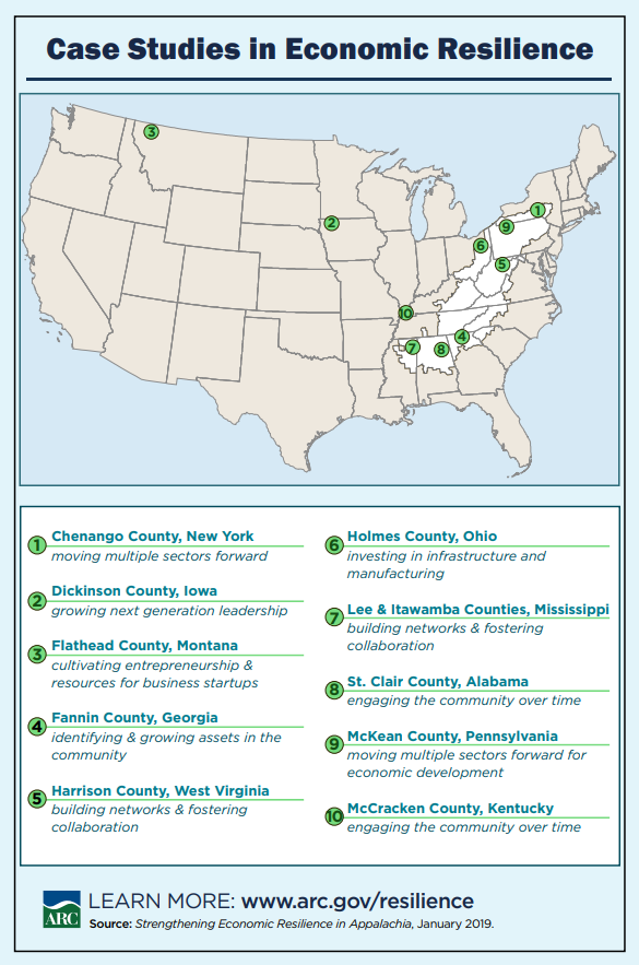 The economies of many counties and subregions in Appalachia have historically depended on a few dominant industries, such as mining or manufacturing. In recent years, Appalachian coal production has plummeted, resulting in devastating impacts on families, communities, counties, and states. It is critical to understand how coal-impacted communities can transform and diversify their economies and build resilience against future economic shocks.